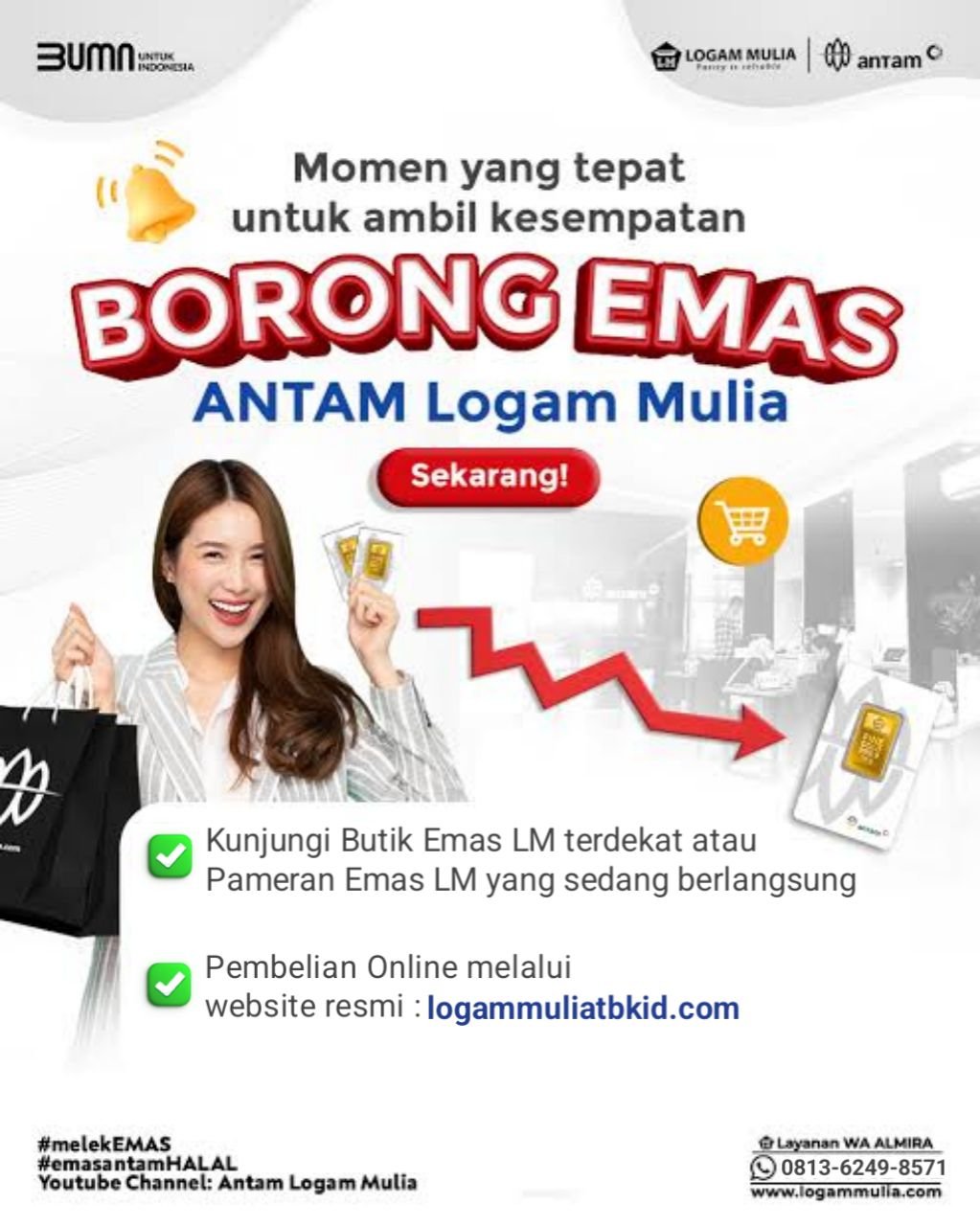 Bentuk : persegi panjang dengan ukiran logo “LM” dan tulisan FINE GOLD 999,9 25g Emas Murni 24 K berukuran 25 gram dengan kemasan ANTAM terbaru.